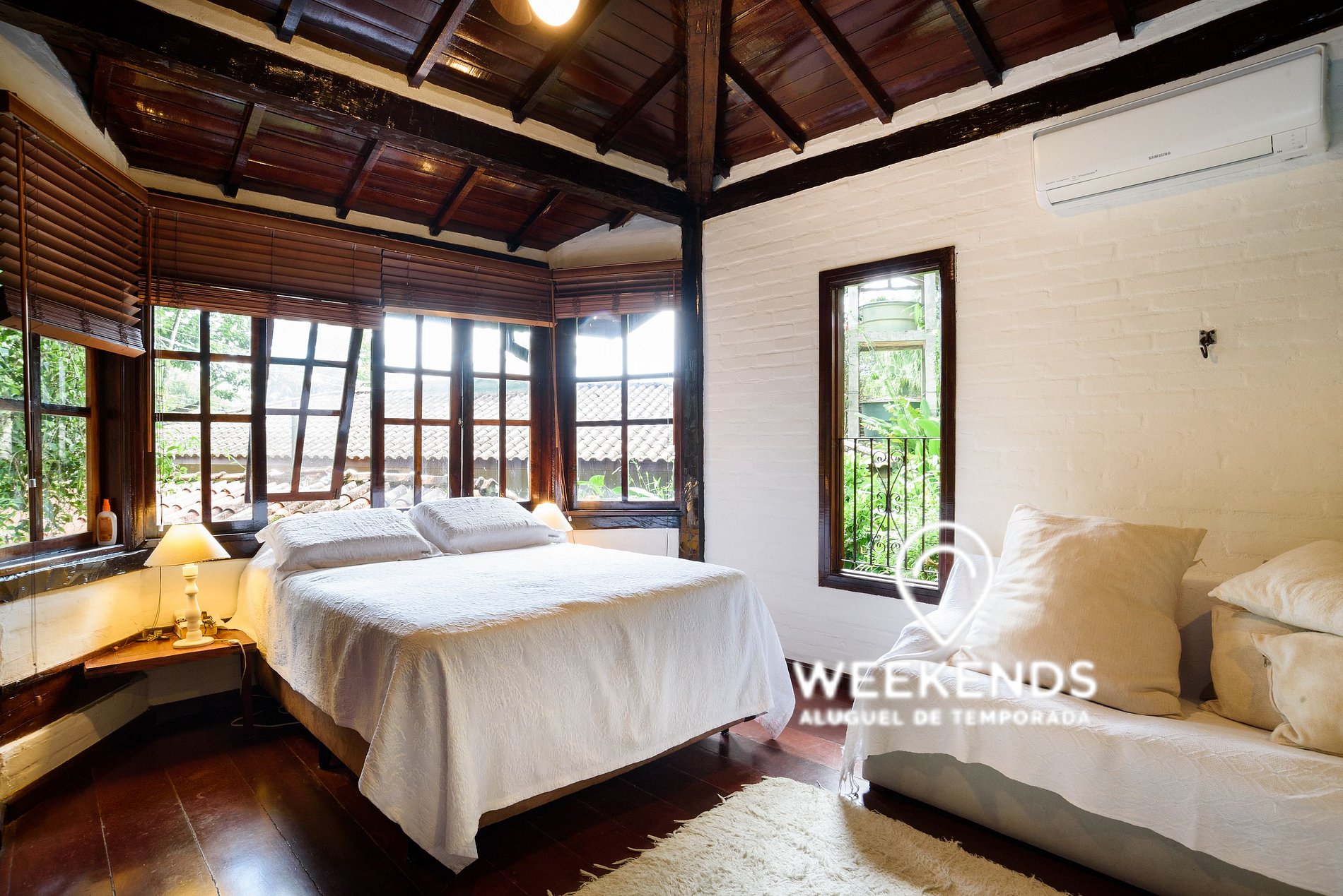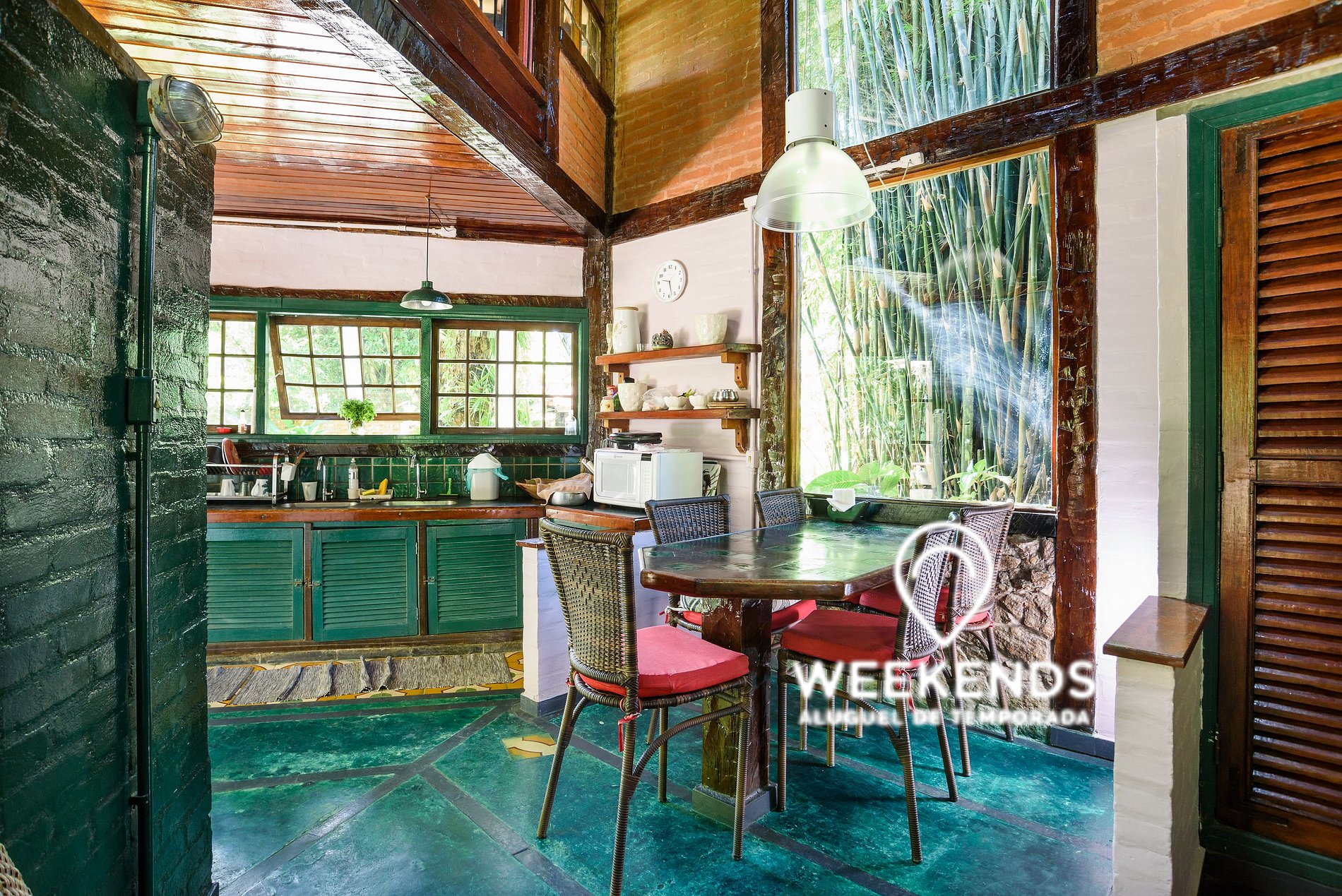 The house has a rustic and clean style, combining solid wood, exposed brick, and large windows that offer a charming view of the surrounding nature. Located just a 5-minute walk from the beach entrance, all bedrooms are equipped with air conditioning and blackout curtains for maximum comfort. The house features a living room with a fireplace, a TV room, fast Wi-Fi, 220V outlets, a fully equipped kitchen, and 4 bedrooms (1 suite). The outdoor area boasts lush vegetation, a beautiful jacuzzi, and a gourmet area with a barbecue. There is parking for 2 cars and a laundry room with a washing machine available. We provide beach chairs, an umbrella, bed linen, and towels. Pets are welcome with a fee of R$150 per pet. The trustworthy housekeeper lives on the property and can offer cleaning and cooking services for R$250 per day, or you can arrange a package directly with her. Ideal for those seeking peace, comfort, and proximity to nature.