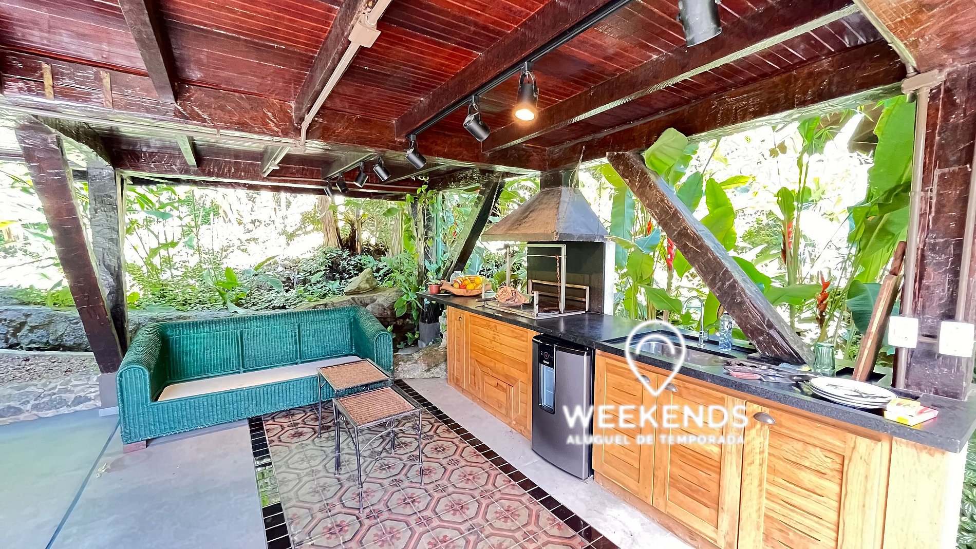 Imagine a charming house where rustic and modern elements blend harmoniously. Located in one of the best areas of Camburi, on the north coast of São Paulo, this house is a peaceful and beautiful retreat, just a 5-minute walk from the beach. With a prime location next to the soccer field on the right side, it’s in one of the quietest and most tranquil areas of Camburi, far from the noise of the main street, ensuring peace and privacy for those looking to disconnect from the fast pace of urban life.