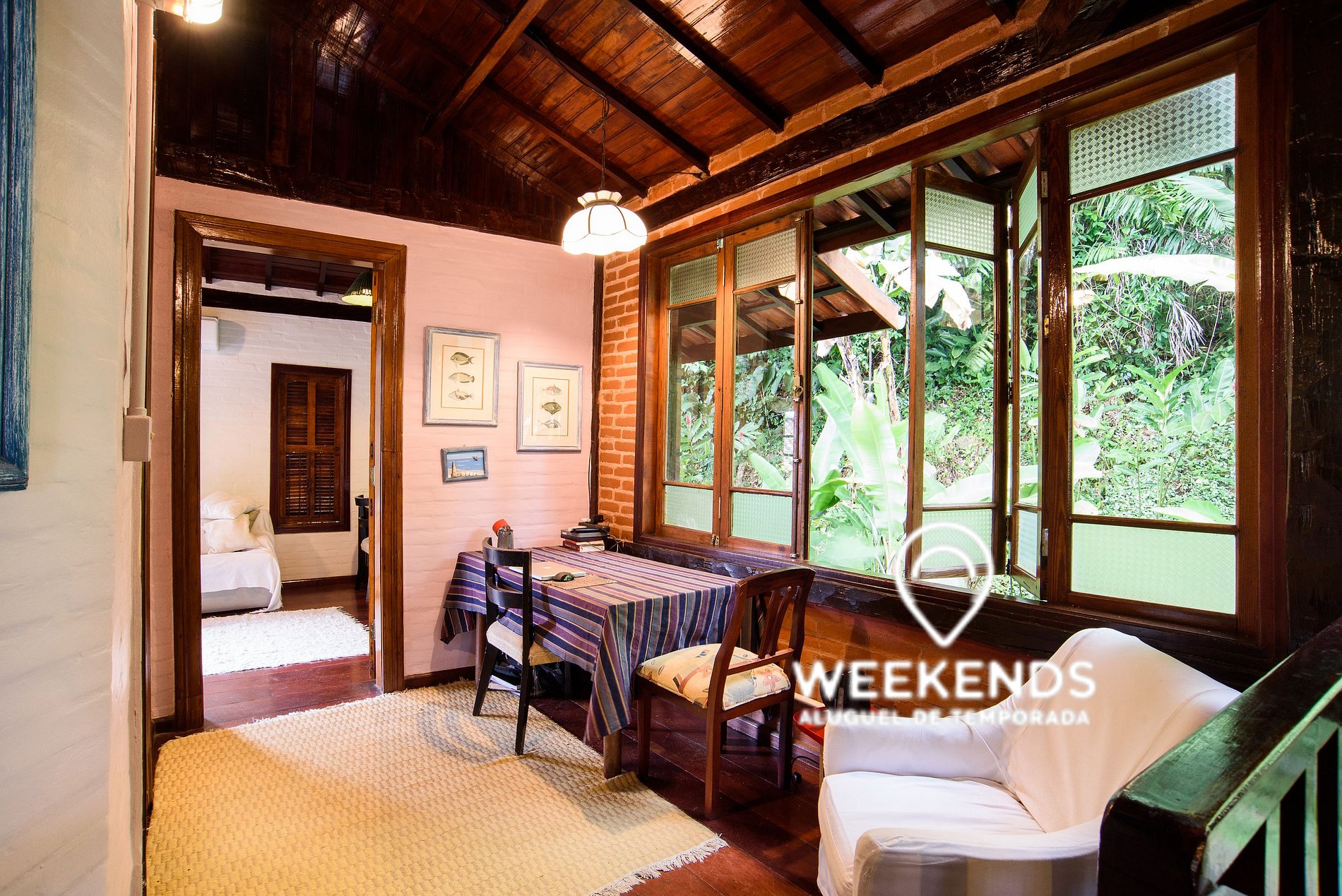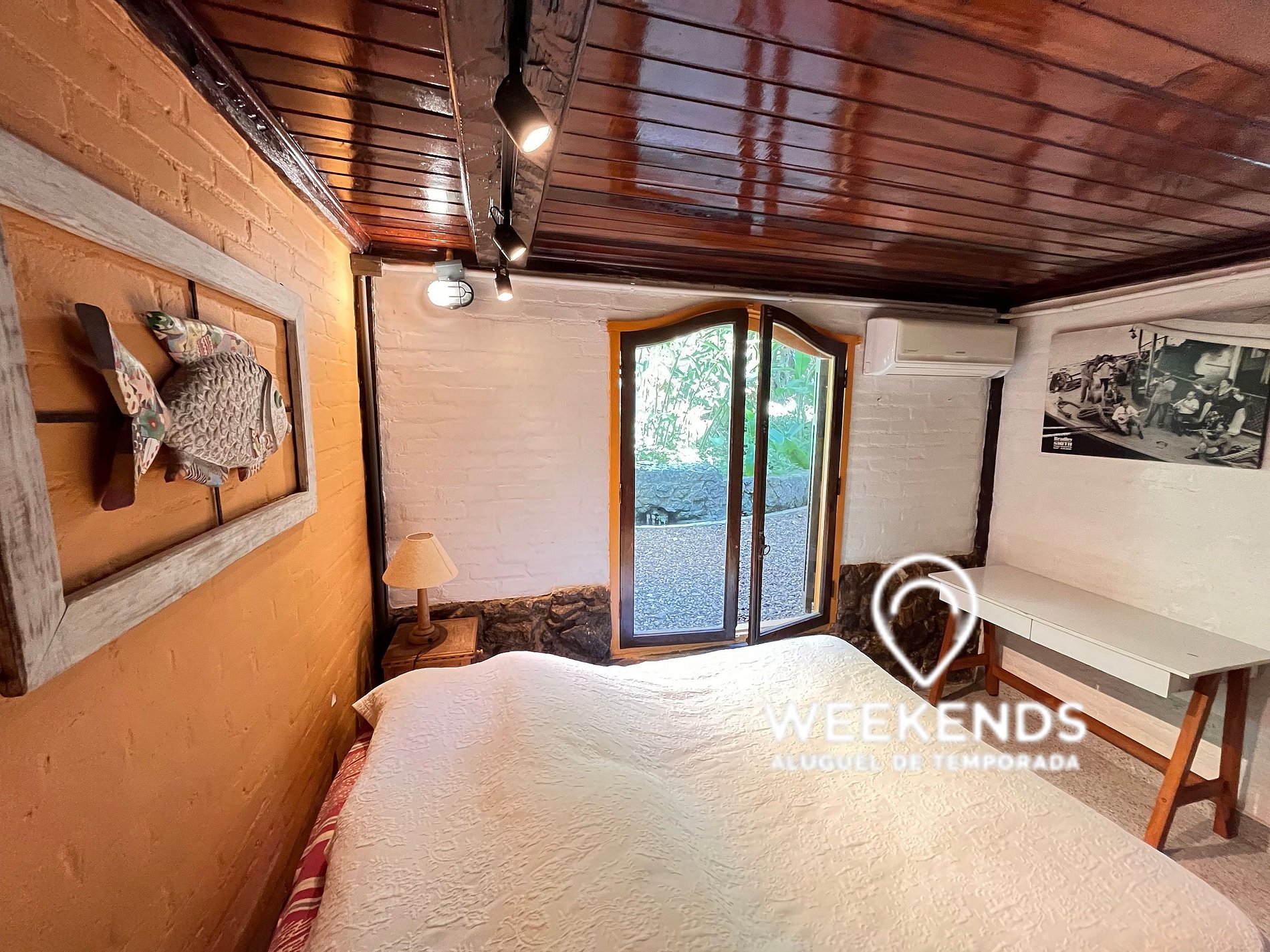 The house has a rustic and clean style, combining solid wood, exposed brick, and large windows that offer a charming view of the surrounding nature. Located just a 5-minute walk from the beach entrance, all bedrooms are equipped with air conditioning and blackout curtains for maximum comfort. The house features a living room with a fireplace, a TV room, fast Wi-Fi, 220V outlets, a fully equipped kitchen, and 4 bedrooms (1 suite). The outdoor area boasts lush vegetation, a beautiful jacuzzi, and a gourmet area with a barbecue. There is parking for 2 cars and a laundry room with a washing machine available. We provide beach chairs, an umbrella, bed linen, and towels. Pets are welcome with a fee of R$150 per pet. The trustworthy housekeeper lives on the property and can offer cleaning and cooking services for R$250 per day, or you can arrange a package directly with her. Ideal for those seeking peace, comfort, and proximity to nature.