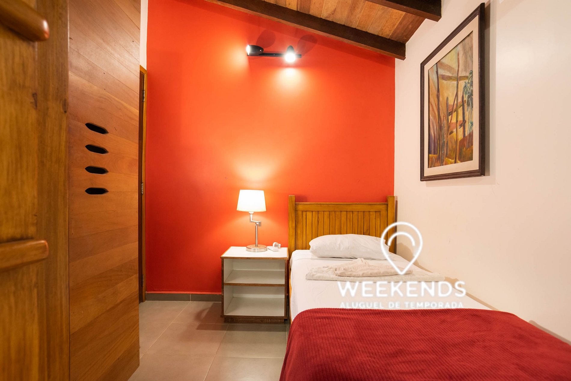 - Suíte 2: Uma cama de casal e uma bicama (cama de solteiro com outra cama de solteiro móvel embaixo).